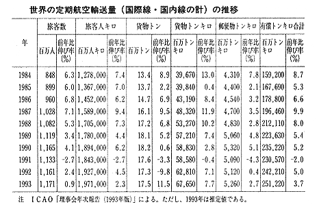 世界の定期航空輸送量(国際線・国内線の計)の推移