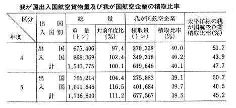 我が国出入国航空貨物量及び我が国航空企業の積取比率