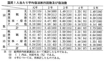 国民1人当たり平均宿泊旅行回数及び宿泊数