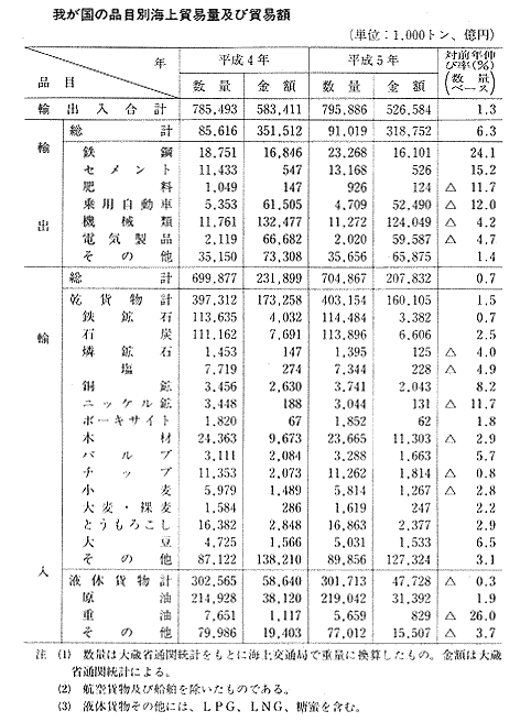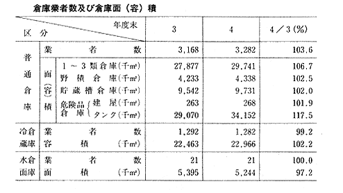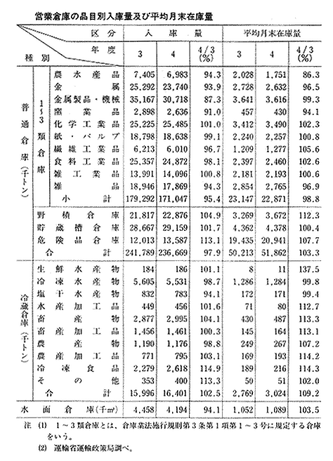 営業倉庫の品目別入庫量及び平均月末在庫量