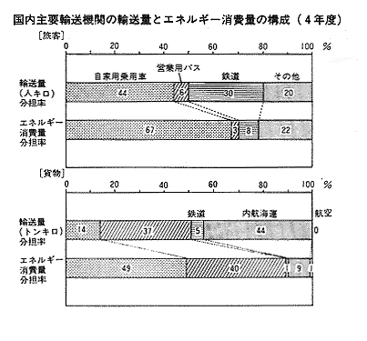国内主要機関の輸送量とエネルギー消費量の構成(4年度)