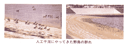 人工干潟にやってきた野鳥の群れ