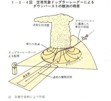 (注) 低層ウインドシヤー 地上から高度約500mまでの、水平または垂直方向の風向または風速の急激な変化。特にこのような低高度におけるウインドシヤ一は航空機の安全な離着陸の妨げとなる。