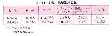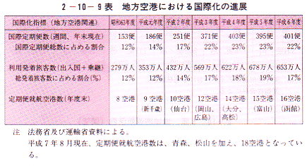近・中距離国際航空の分野で我が国の地方都市から諸外国の目的地へ直行する旅行パターンが好まれることもあり、最近では、本年4月に青森−ソウル線(大韓航空)、青森−ハバロフスク線(アエロフロート)及び松山−ソウル線(アシアナ航空)が開設されるなど地方空港発着の直行国際航空路線の開設が進展してきた。しかしながら、地方空港発着の国際定期便数及び利用旅客数の伸びも、最近では鈍化傾何を示している