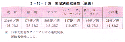 このような状況の下で、成田空港については、1991年以来、空港制約の関係から外国航空企業からの増便や新規乗り入れ要望等に応えることができない状況にあり、同空港の国際航空ネットワークは、近年経済発展等の著しいアジア・太平洋諸国に徐々に重点を移行しつつある現在の国際航空需要に比して、北米、欧州の割合が高いままとなっている
