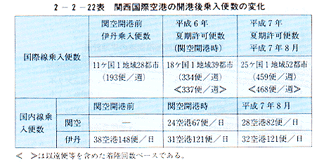 なお、平成7年7月1日より国際線の着陸料の引下げ(2,400円/トン→2,300円/トン)を行ったところであり、今後も乗り入れ便数の増加が期待される。