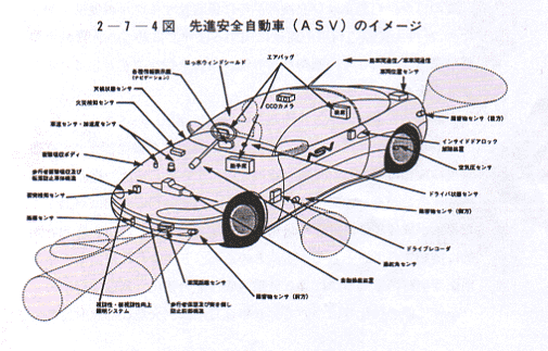 エレクトロニクスを応用することにより、自動車をより高知能化した先進安全自動車(ASV:Advanced Safety Vehicle)を21世紀初頭に実現するための調査・研究を平成3年度から5か年計画で実施している。