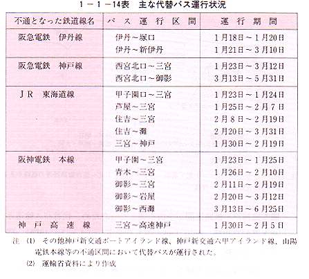 阪神・淡路大震災による鉄道施設の主な被害状況
