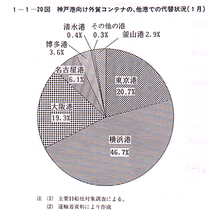 神戸港向け外貿コンテナの、他港での代替状況(1月)