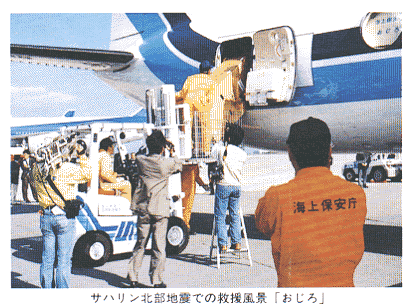 海上保安庁では、地震発生後直ちに関係機関から関連情報の収集等を行っていたところ、外務省及び北海道からの緊急支援物資の輸送要請がなされ、第一管区海上保安本部千歳航空基地所属YS11A型機「おじろ」が5月30日及び31日の2回にわたり医療機器、食料品・飲料水、防寒具等の緊急支援物資をユジノ・サハリンスクまで空輸した。また、巡視船「そうや」が6月3日に、巡視船「れぶん」が6月8日にそれぞれ緊急支援物資をコルサコフまで輸送した。