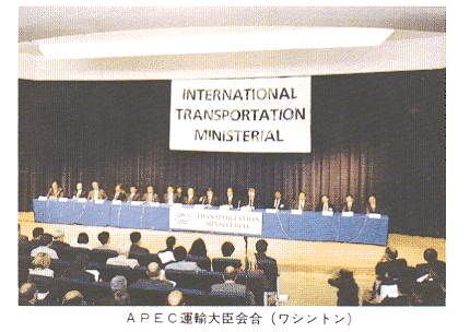 平成7年6月13日に米国ワシントンにおいて、APEC(アジア太平洋経済協力)域内18の国及び地域の代表の参加を得て、初のAPEC運輸大臣会合が開催された。歴史・文化や経済の発展段階を異にする各メンバーの間で、「運輸インフラの整備」、「人と物の効率的移動の促進」、「人材養成」等のテーマについて、対等かつ平等な立場からの自由な意見交換が行われた。