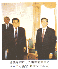 協議を前にした亀井前大臣とペーニャ長官(ロサンゼルス)