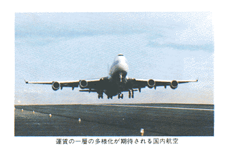 利用者のニーズが高度化・多様化し、個人型の割引運賃の充実を求める声が高まっていることなどに対応して、平成6年6月に航空法を改正し、同年12月より割引率5割までの営業政策的な割引運賃及び料金等について届出制とした。これにより、事業者は多様な割引運賃等の設定を自主的な判断により行うことが一層容易となり、7年5月には国内航空運賃において従来見られなかった利用主体に制限のない割引運賃である事前購入割引が導入された。