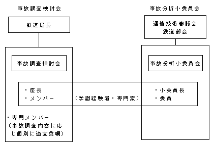 鉄道の事故調査・分析については、運輸技術審議会答申(平成10年11月)において、公平・中立の立場から国が事故等の調査・分析を行うとともに、鉄道事業者による事故等の調査・分析結果を的確に評価することが必要であることの指摘がなされたことを受け、「事故調査検討会」及び「事故分析小委員会」による事故等の調査・分析体制を整備した。