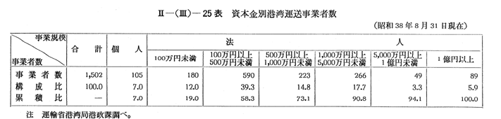 はしけについては,ここ2,3年大幅な増加を示しているが,これを昭和33年と昭和38年とを比較すると23%増にすぎず,運送量の増加(36%)を下回っている。また,はしけの老朽化が目立つており,船令20年以上のはしけおよび船令不詳のはしけは全体の47%を占めている 〔II−(III)−23表〕。