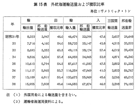 第15表 外航海運輸送量および積取比率