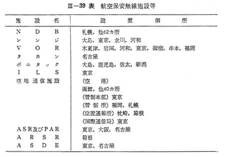なお,現在航空局が運用中の航空保安無線施設等の現有施設は 〔III−39表〕のとおりである。