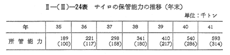 サイロは穀物をバラのまま保管するための施設であるが,このバラ扱いにより,荷役労務費及び荷造り包装費が不要となり,流通経費が大巾に節減されるので,倉糧庁の協力のもとにその整備を推進している。 輸入小麦,雑穀のうち,サイロを経由するものは,約4割と推定されるが,このサイロ経由比率を高め,かつ,輸入量の増大に対処するため,サイロ建設に対する助成措置を強化し,その建設を促進する必要がある。