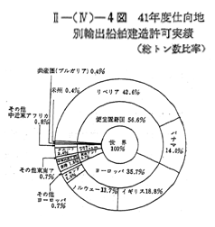 41年度の国別受注量は,便宜置籍国であるリベリアおよびパナマが全体の43%および14%であり,前年度に比べ145万総トン及び41万総トンの伸びを示した。