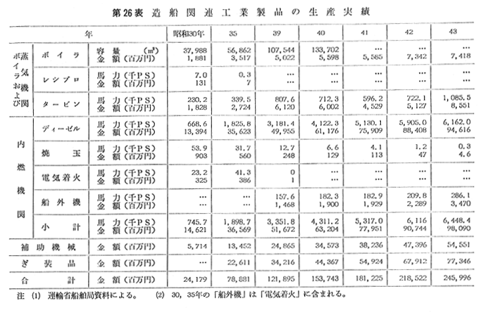 第26表 造船関連工業製品の生産実績