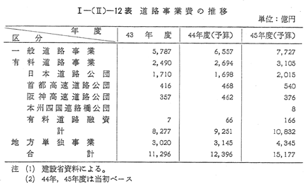 さらに,急増する道路需要に対処するため,第6次5カ年計画(45年度〜49年度)が総額10兆3,500億円で閣議了承(45年3月)された。