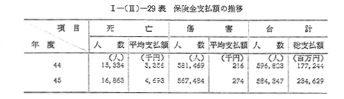 また,保険金支払いの財源となる保険料を主な車種についてみると,現在,年間で営業用バス,7万5,500円,大都市のタクシー15万2,300円,自家用乗用自動車1万8,650円,営業用普通トラツク(最大積載量が2トンをこえるもの)9万1,900円,軽自動車8,350円となつている。