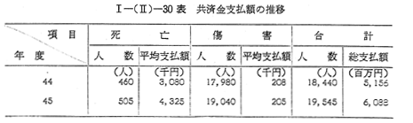 責任共済契約の締約車両数は,44年の責任共済契約を締結できる車種の制限の撤廃,45年の責任共済契約を締結できる者の制限の緩和等により,増加傾向にあり,これに伴い共済金支払人数および共済金支払額も 〔I−(II)−30表〕のとおり,逐年増加している。