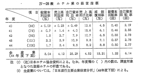 主要ホテルの利益率は, 〔IV−28表〕のとおり,41年までは低下しており,ホテル経営は苦しい立場におかれていたが,42年以降はやや好転しつつある。