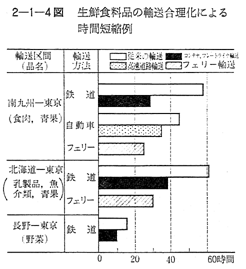 自動車輸送についても幹線道路,高速道路の整備により,たとえば宮崎・東京間で従来の45時間が36時間に短縮されているが,生鮮食料品の輸送拡大にとつて画期的な契機となつたのは,長距離フエリー航路の開設である。たとえば細島(宮崎県)・川崎間は長距離フエリー就航により25時間で輸送できるようになり南九州の位置上の制約が大幅に緩和され生鮮食料品の輸送量は品目数量ともに拡大した。また北海道(苫小牧,釧路)と東京を30時間で結ぶ長距離フエリーの就航により,北海道産の農産物および魚介類の輸送が容易に行なわれることとなつた。