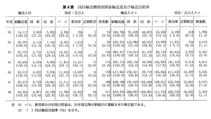 第4表 国内輸送機関別旅客輸送量及び輸送分担率