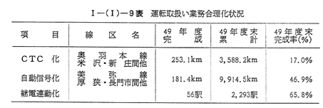 一方,運転取扱い業務の合理化のためCTC化,自動信号化,継電連動化の工事を 〔I−(I)−9表〕のとおり実施した。