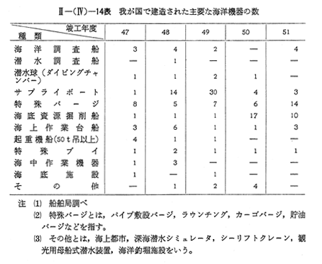海洋開発用機器の建造は,海底資源掘削船,特殊パージを中心に行われている。その状況は