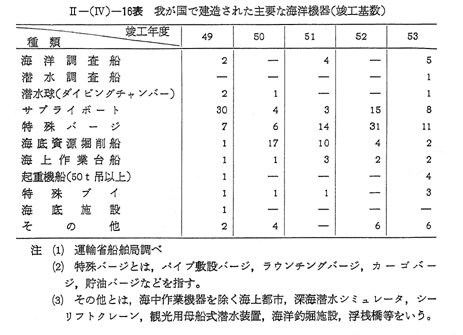 このような情勢のなかで運輸省は,造船技術に基礎をおいた各種海洋開発技術の研究開発を推進する一方,運輸技術審議会により,昭和53年4月に答申された「浮遊式海洋構造物(貯蔵船方式)による石油備蓄システムの安全指針」をもとに,洋上備蓄に関し,自然条件の把握,環境保全,貯蔵船及び港湾の設計,保安防災等に検討を加えた。