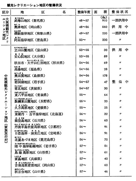 観光レクリエーション地区は,国民の観光レクリエーション需要に対応して,国民が恵まれた自然の中で手軽に利用できる健全な観光レクリエーション活動の場を確保するとともに,あわせて地域の振興に資することを目的として,環境との調和を配慮しつつ,自然の中にキャンプ場,ピクニック緑地,遊歩道,サイクリング道路等を整備するものである。事業の実施に当たっては,地方公共団体が主体となって整備を行い,そのうち基盤的施設については,国が補助を行うとともに,関連施設については第三セクターや民間企業の活用も図ることとしている。