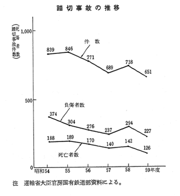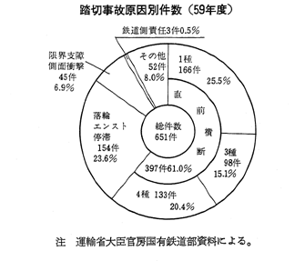 踏切事故原因別件数(59年度)