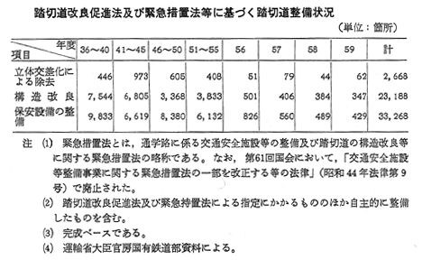 踏切道改良促進法及び緊急措置法等に基づく踏切道整備状況