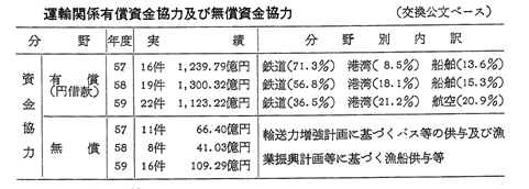 昭和59年度運輸分野における資金協力(円借款,無償資金協力)案件