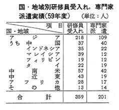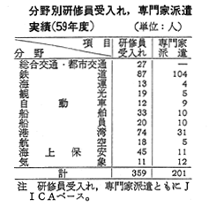 分野別研修員受入れ,専門家派遣実績(59年度)