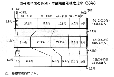 海外旅行者の性別・年齢階層別構成比率(59年)