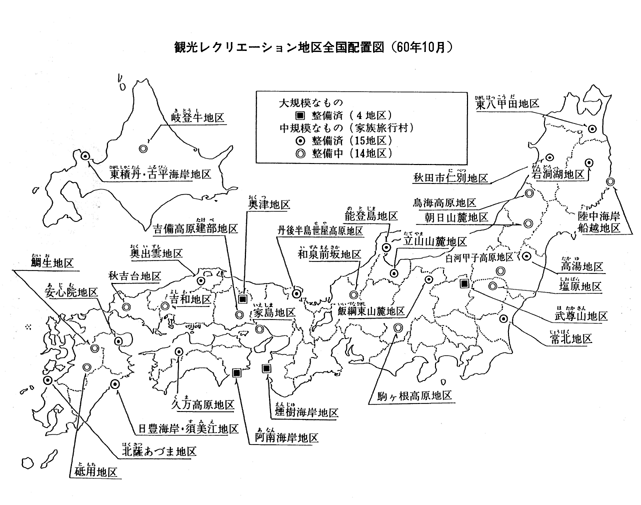 観光レクリエーション地区全国配置図(60年10月)