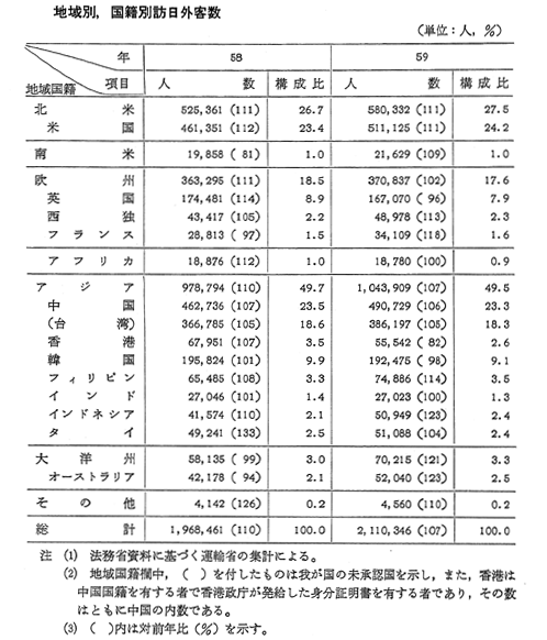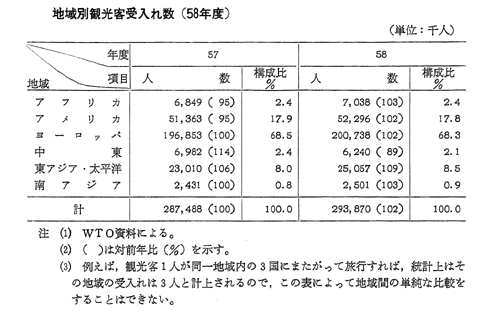 地域別観光客受入れ数(58年度)