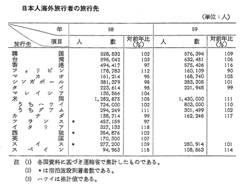 日本人海外旅行者の旅行先