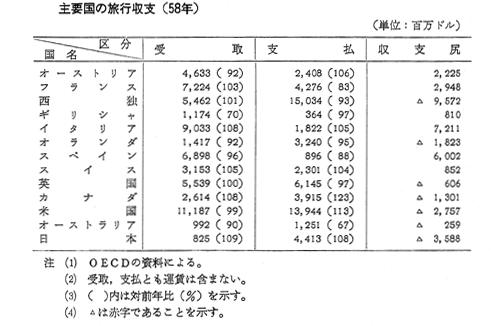 主要国の旅行収支(58年)