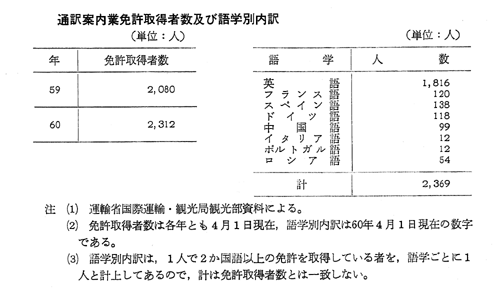 通訳案内業免許取得者数及び語学別内訳