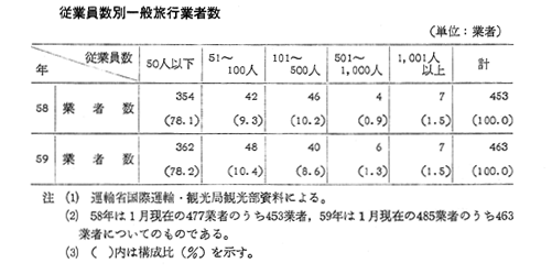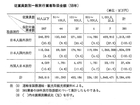 従業員数別一般旅行業者取扱金額(58年) |