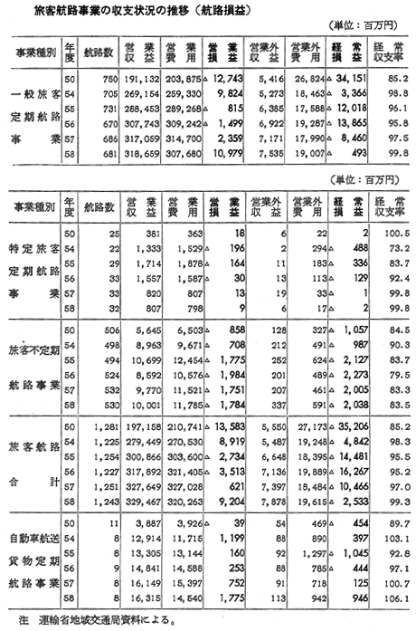 旅客航路事業の収支状況の推移(航路損益)