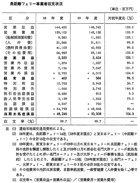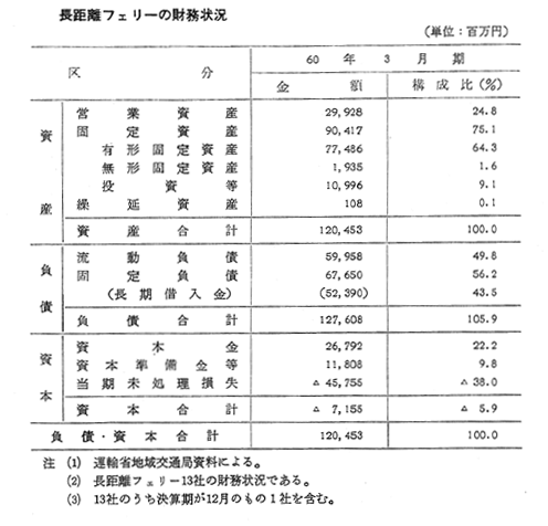 長距離フェリーの財務状況