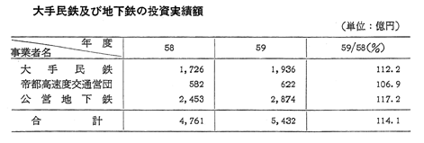 大手民鉄及び地下鉄の投資実績額