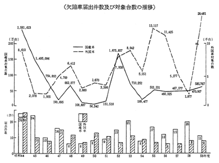(欠陥車届出件数及び対象台数の推移)