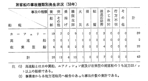 旅客船の事故種類別発生状況(59年)